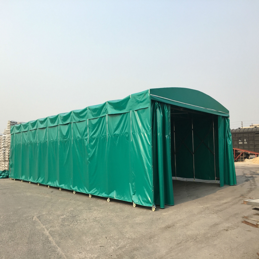 活动推拉雨棚,顾名思义就是可以移动活动的雨棚,使用时可以推拉开来,不用的时候收回来,不占空间,灵活方便。推拉伸缩篷由于其便利性,广泛应用于餐饮大排档、工厂仓库、停车场等场所,是传统建筑的替代品。