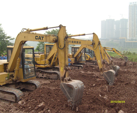 4.在大型场地学习多种机型的操作方式,深度练习各种复合动作,如:日本小松练习基本动作、行走、挖土石方、装车、提升重物、陡坡行走、用美国卡特练习平场、修边坡、挖沟壑、破碎、用大型挖掘机深度练习各种复合动作