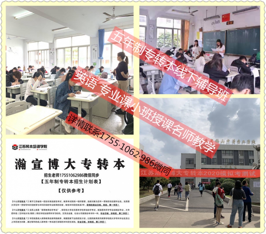 备考五年制专转本参加辅导班肯定更能确保通过率,好的辅导班更能事半功倍,江苏瀚宣博大专转本学校专业的五年制专转本(五年一贯制专转本)培训机构,是江苏省唯1一家连锁大型培训机构,师资雄厚,教学资源丰富,更有多年来编写的内部权威资料,专业应对五年制专转本考试,是南京晓庄学院、金陵科技学院、三江学院等主考院校指定报名的五年制专转本培训班,辅导考生英语和专业课,英语自基础教起,词汇、语法、阅读等一把抓,夯实基础提优拔高,专业课资.深老师授课,与主考院校合作提前获取专业课考纲,让同学们备考效率更高,更多详情联系宋老师 1755(微)1062(同)986 了解,联系老师预约免费试听课。