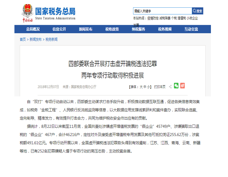 自2019年到2020年税收优惠政策不断,金税三期的上线推行,程序流程不断简化,税务稽查越来越严格,2020年起,稽查力度再次加强,抽查比例提高,严重打击偷税漏税行为,税务总局、公安部、海关总署、中国人民银行在内的四部委共同部署开展打击虚开骗税违法犯罪两年专项行动,重点打击没有实际经营业务只为虚开的“假企业”、没有实际出口只为骗取退税的“假出口”。