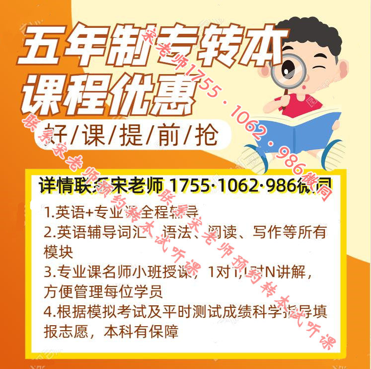 江苏瀚宣博大专转本学校专业开设五年制专转本英语和专业课培训14年,英语从词汇,语法到阅读,写作等所有模块,从基础到冲刺再到后期刷题巩固阶段,全程精讲充足的课时保质保量,让同学们实现从基础到高分的飞跃;专业课更是与主考院校密切合作,获取内部考纲提前半年左右开课,有足够的时间让同学们理解考试重点,还有主考院校名师授课,1对1,1对N小班授课,方便老师管理到每位学生,只要跟着老师进度走,成功转本不是问题,江苏瀚宣博大专转本学校历年通过率更是稳定在85%以上,全省第1高,包揽大部分院校专业的高分状元,让同学们实现大学梦,实现全日制本科梦,更多五年制专转本辅导班和上课详情联系瀚宣博大宋老师1755(微)1062(信)986,联系老师预约试听课。
