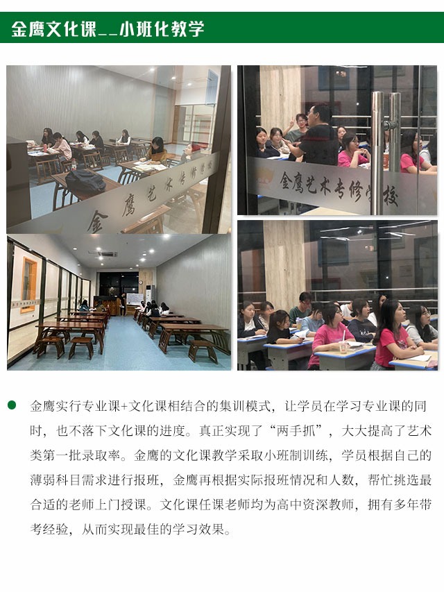 如果你现在还不知道如何备考,建议前往专业的音乐艺考培训机构进行测试,让专业老师帮你看一下目前的水平,有没有必要继续走音乐艺考这条路,给你专业的备考建议。金鹰艺术专修学校不会毫无根据地否定一个考生的梦想,但也不会空口给考生一个虚无缥缈的未来。对于前来参加集训的学员,均须要进行入学测试。测试通过后,学校会根据考生的实际水平进行专业定向,安排与考生专业水平相匹配的班级与课程,真正达到量身定制。