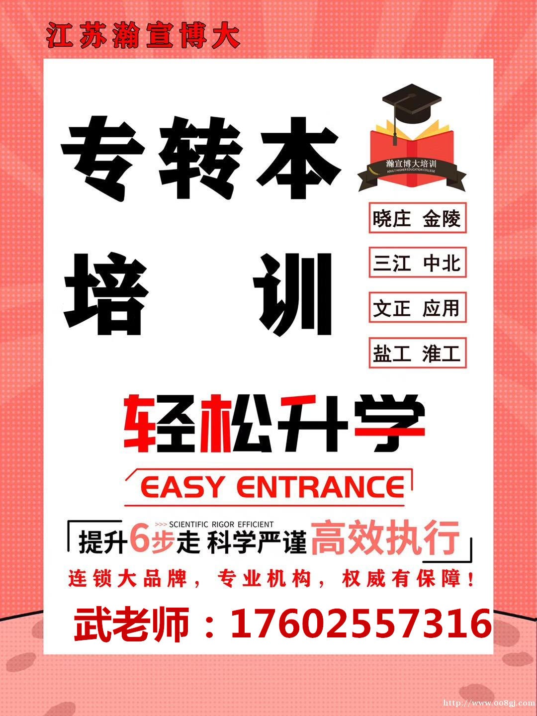 江苏瀚宣博大五年制专转本培训机构作为江苏省一家规模化、连锁化、专业化的培训机构,专业辅导五年制专转本教育十几年,专门辅导一门英语+两门专业课。更多详情可免费咨询武老师:176(微)0255(同)7316,领取招生简章及试听课。
