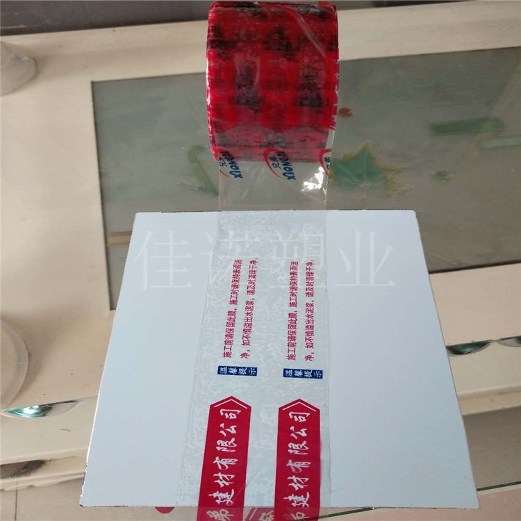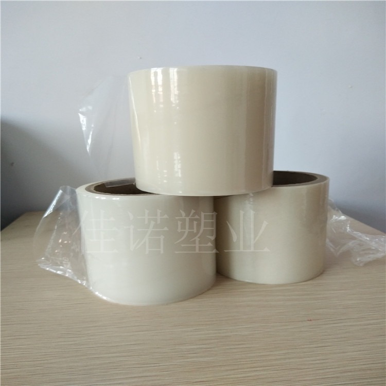 该产品是以特定配方的聚乙烯薄膜为基材,以聚丙烯酸(酯)树脂作为压敏胶的主要材料,再配以特定助剂经涂布、分切、包装等工序制得;保护膜的柔韧性好,对被贴型材表面的“润湿”速度快;贴板后剥离强度增加率低;压敏胶的稳定性好,不会对被贴表面产生不良影响。