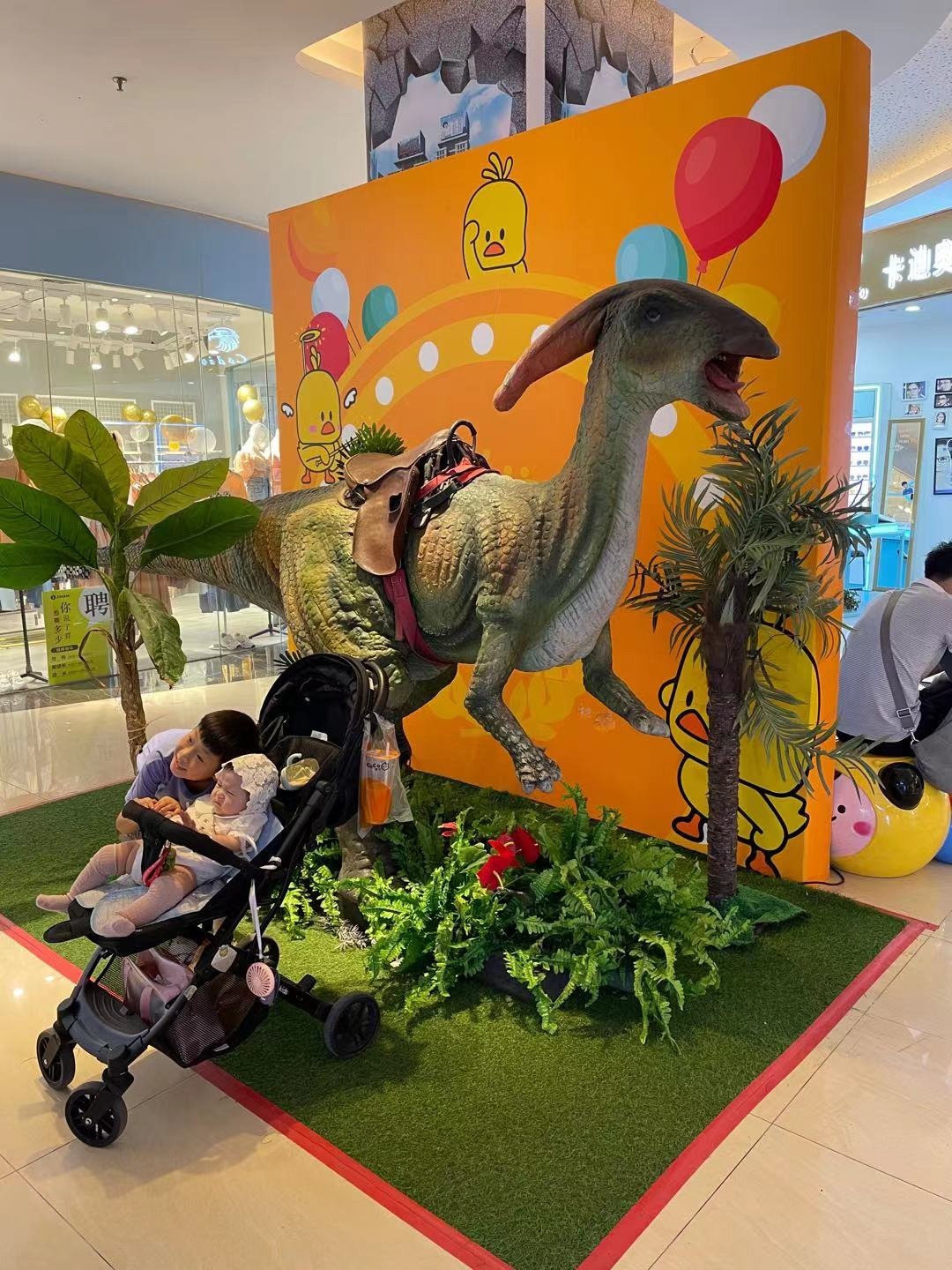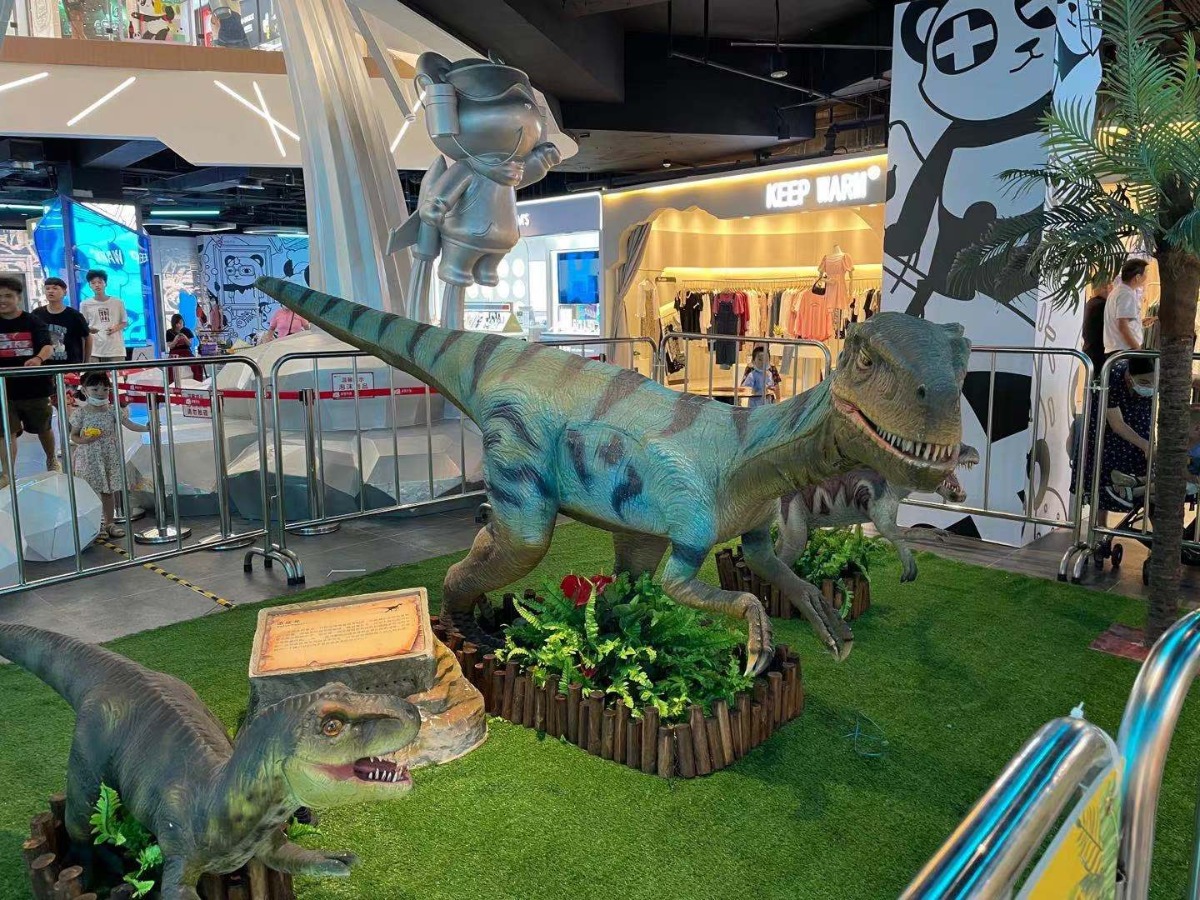 仿真恐龙是采用钢材制作恐龙支架,加上机械、传动,用高密度海绵进行立体加工制作恐龙肌肉部分,然后在肌肉上面加入纤维,增加恐龙皮肤的强度,后在用硅胶稀释后均匀的刷到恐龙的肌肉上形成恐龙的表皮,再喷上颜色,后植入控制程序,这样一条完整的仿真恐龙就出来了。这样的恐龙可以做到眼睛、头、嘴、脖子、爪子、腹部、腿、尾巴等动作再加上合适的叫声就非常的生动了!