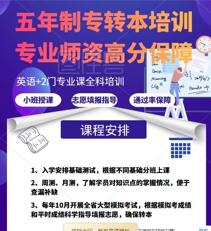 对于五年制专转本政策的改革,其实是可以预料的,因为每年都会有院校新增或者专业取消,不少自学的同学复习的差不多了,结果临到考前2个多月却遇到了考试科目变更专业取消的意外,剩余时间不够来复习,而报辅导班的同学就没有这些风险,首先报辅导班老师会根据历年的考点和当年考纲、考试重点来授课,备考有针对性能显著提高成绩,其次,辅导班有专业的团队对于内部政策消息能早知道,避免同学们备考的遇到的政策变更等各种意外,最后,辅导班考前还有押、题,准确率高,让同学们的分数提高一大截,转本胜算大!