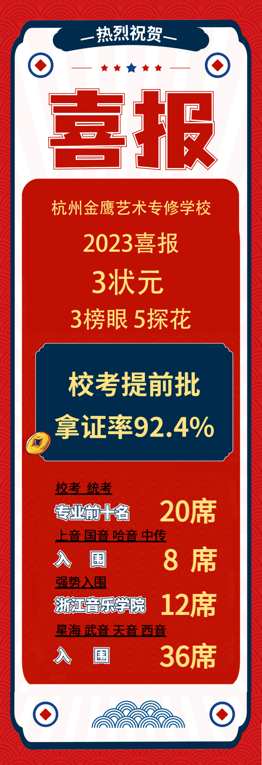 强势入围浙江音乐学院12席,星海、武音、天音、西音入围36席