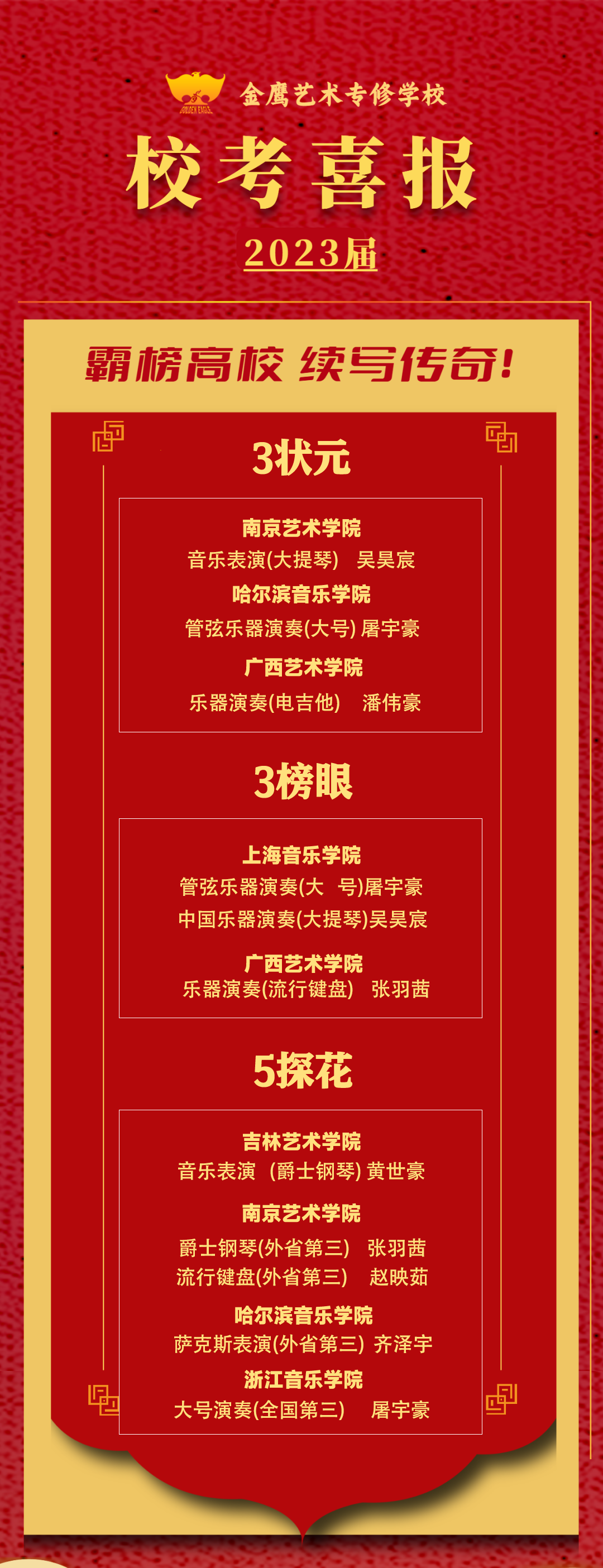 2023年校考成绩揭晓,金鹰再次霸榜归来。