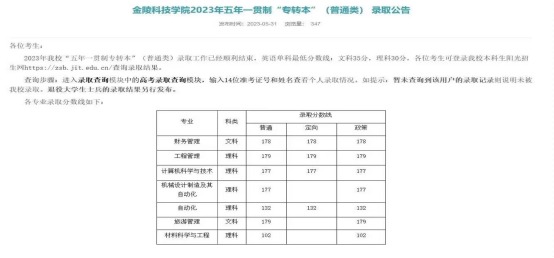 速看:五年一贯制专转本录取线已出