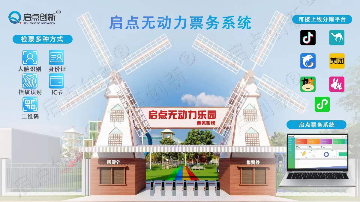 - 来宾无动力乐园线上线下全渠道票务分销系统抖音门票核销闸机安装