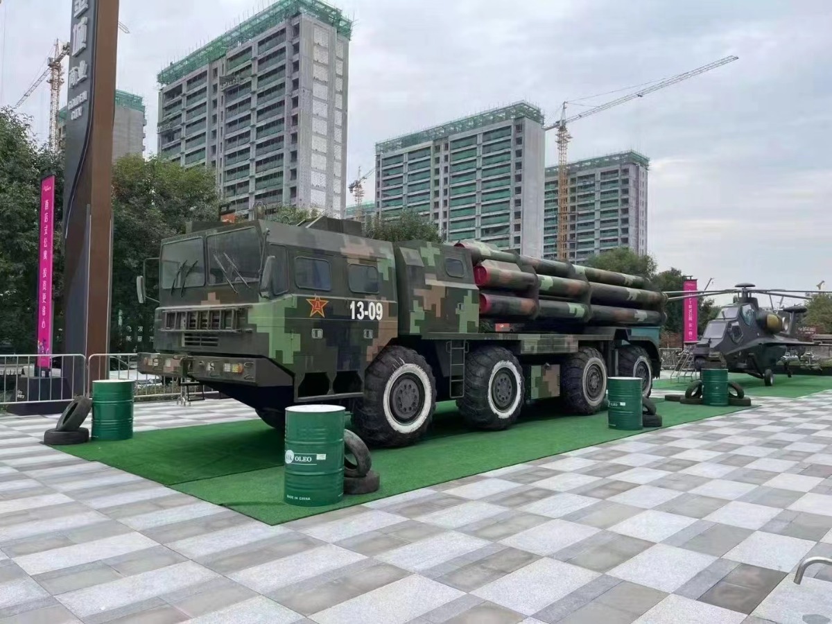 1:1比例制作。可提供的军事道具租赁的模型有:37陆地高炮,63A甲步兵战车,6×6水陆两栖轮式甲车,歼-15战斗机,歼-10战斗机,武直十,阿帕奇,