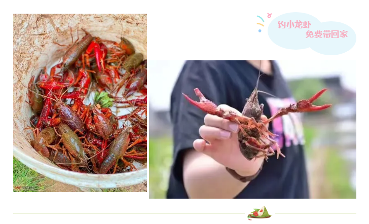 活动一:端午当天赠送价值10元钓小龙虾钓杆一根,钓到的小龙虾免费送
