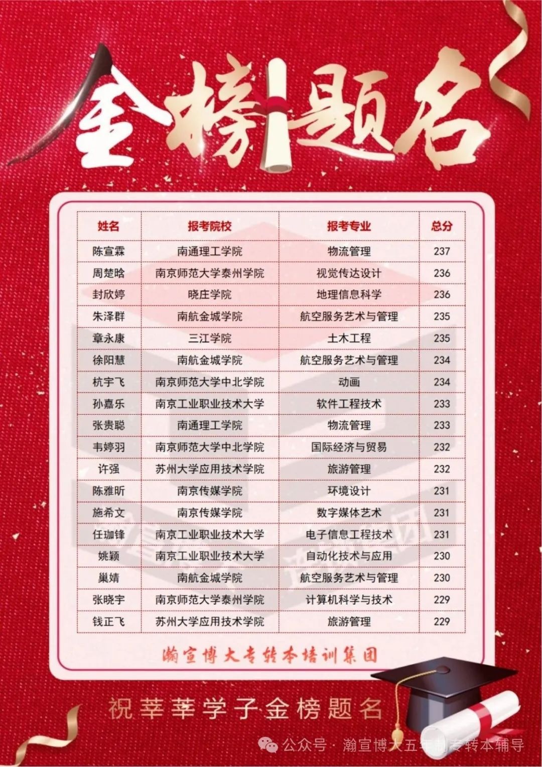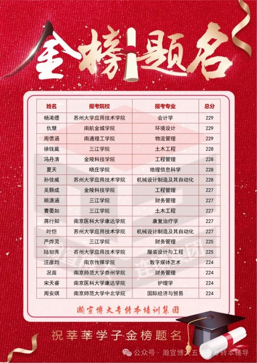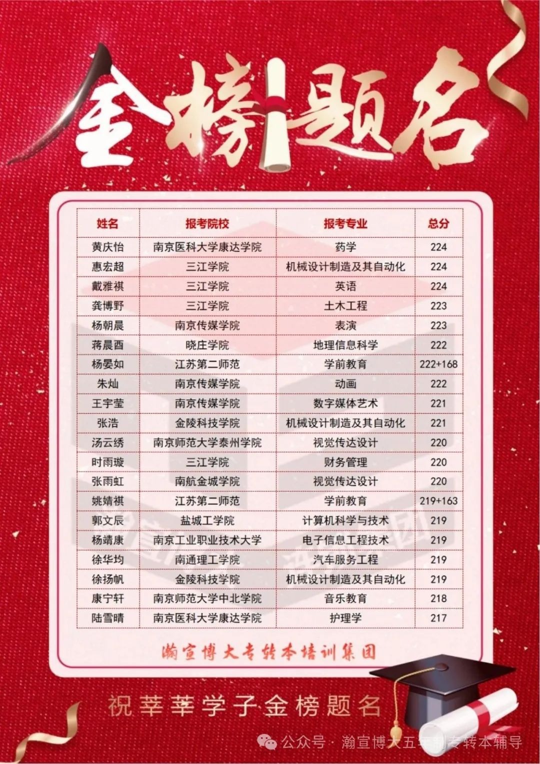 盛夏传捷报,桃李绽芬芳!在这个满载收获的季节,瀚宣博大五年制专转本学子以拼搏之姿交出了一份闪耀的答卷!