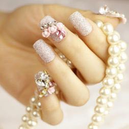 5.水晶甲: 用水晶粉,水晶液造就优美甲形。它的特点是质地坚固耐磨,不易断裂。